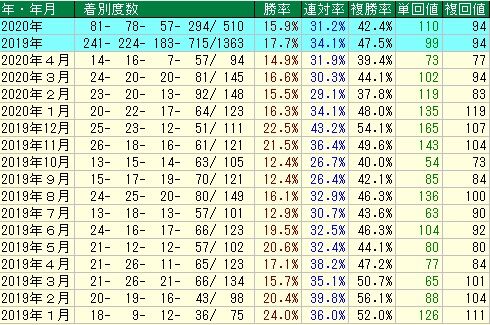下記はダート4人気以下馬の月別成績