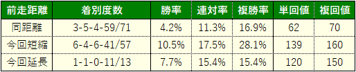 まず、好走馬の特徴として挙げられるのは距離短縮馬が強いこと。