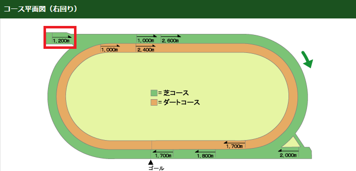 まずは舞台となる函館芝1200mコースについて考えますが、函館・札幌両競馬場は取り上げる機会が少ないですから、この機会にしっかり理解を深めておきましょう。