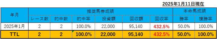 回収率432.5%(的中率100.0%)