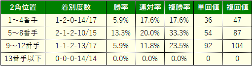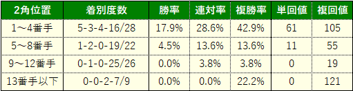 そして、全体にコーナーがキツいことからロスなく立ち回りやすい内枠馬優勢。