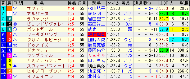 力みが強かったとは言え、この流れでビヨンドザヴァレーがアルジーヌにキレ負けするとは夢にも思っておらず、一度各馬の評価をリセットする必要がありそうです。特に多く語れることはありません。