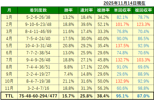 2025年の爆単馬成績(月額会員様限定配信)