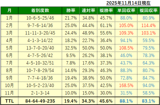 2025年の注目馬成績
