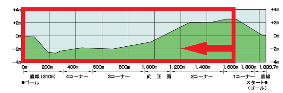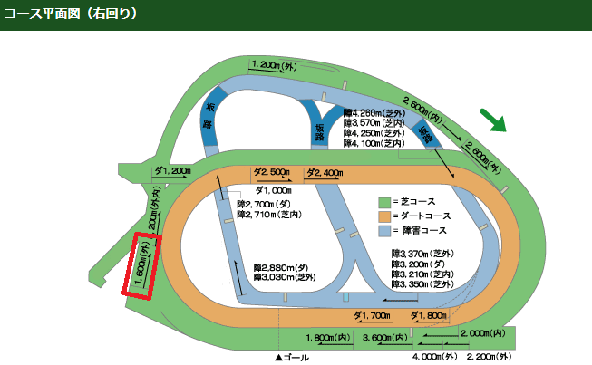 他には、前述通り2角までの距離が短く、2角がキツいコーナーですから外枠不利が特徴として挙げられます。