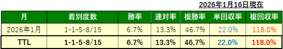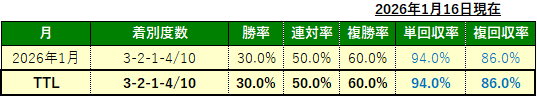 2026年の「爆単馬」成績(月額会員様限定配信)